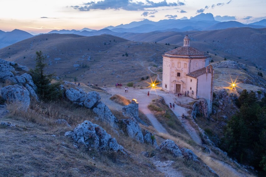 Rocca Calascio, petite fraction de la ville abruzzaise de Calascio, est un ancien et fascinant bourg d’origine médiévale qui s’élève sur une hauteur à 1460 mètres d’altitude. Situé à environ trois kilomètres de la commune de Calascio, Rocca Calascio abrite une forteresse qui a été construite vers le XIIe siècle dans une position stratégique permettant de contrôler les vallées des Abruzzes. Ce lieu était en effet un crucial poste d’observation militaire qui permettait de repérer d’éventuelles attaques ennemies et était en communication avec les autres tours de guet de la région.
